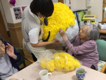 ニコチャン、家康くん、ツクイ静岡川合グループホームの看板となりました。
