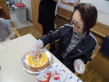 今回クリスマスも近いこともあり、お客様と一緒に、クリスマスケーキ作りを行いました。