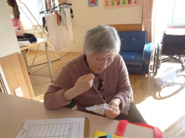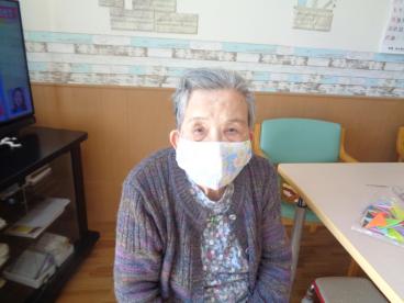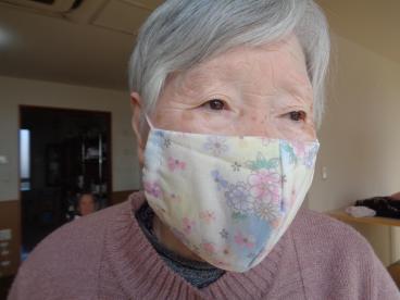 お客様自ら作ることで、苦しくない丁度いいサイズに、そして自分好みのマスクができあがり、つけていただくことに成功!
