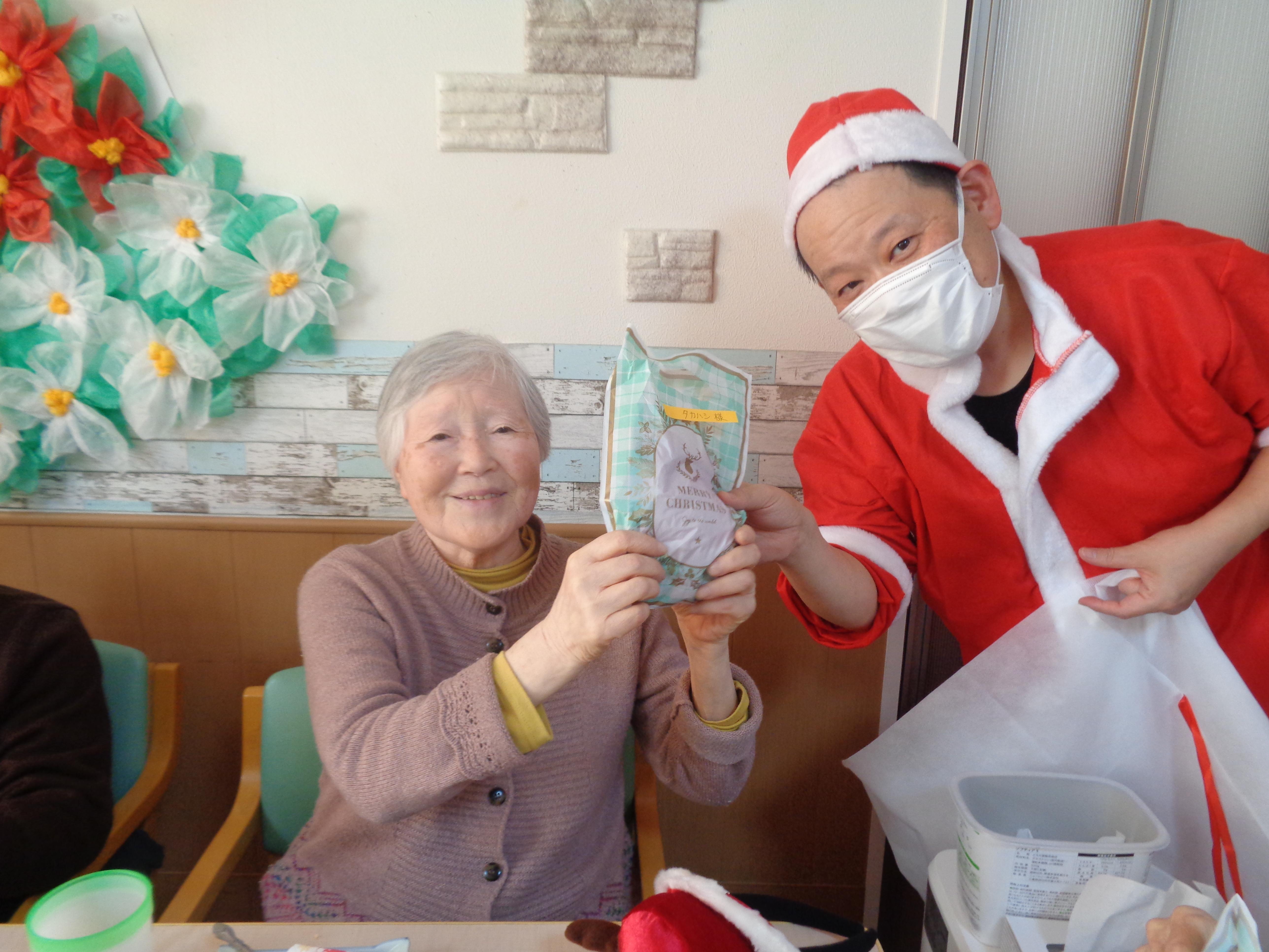 サンタのスタッフからのささやかながらのプレゼントでお祝いを。