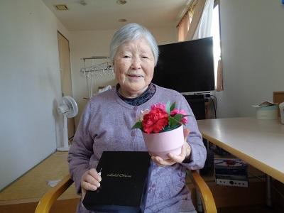 地域の鯉のぼり見学に行ってきました。残念ながら風が吹いていなく泳いでいなかったのですが、色とりどりの鯉のぼりに喜んでいらっしゃいました。母の日にはささやかながらお祝いを。ご家族の皆様も母の日のプレゼント、大変喜ばれていました。有難うございます。