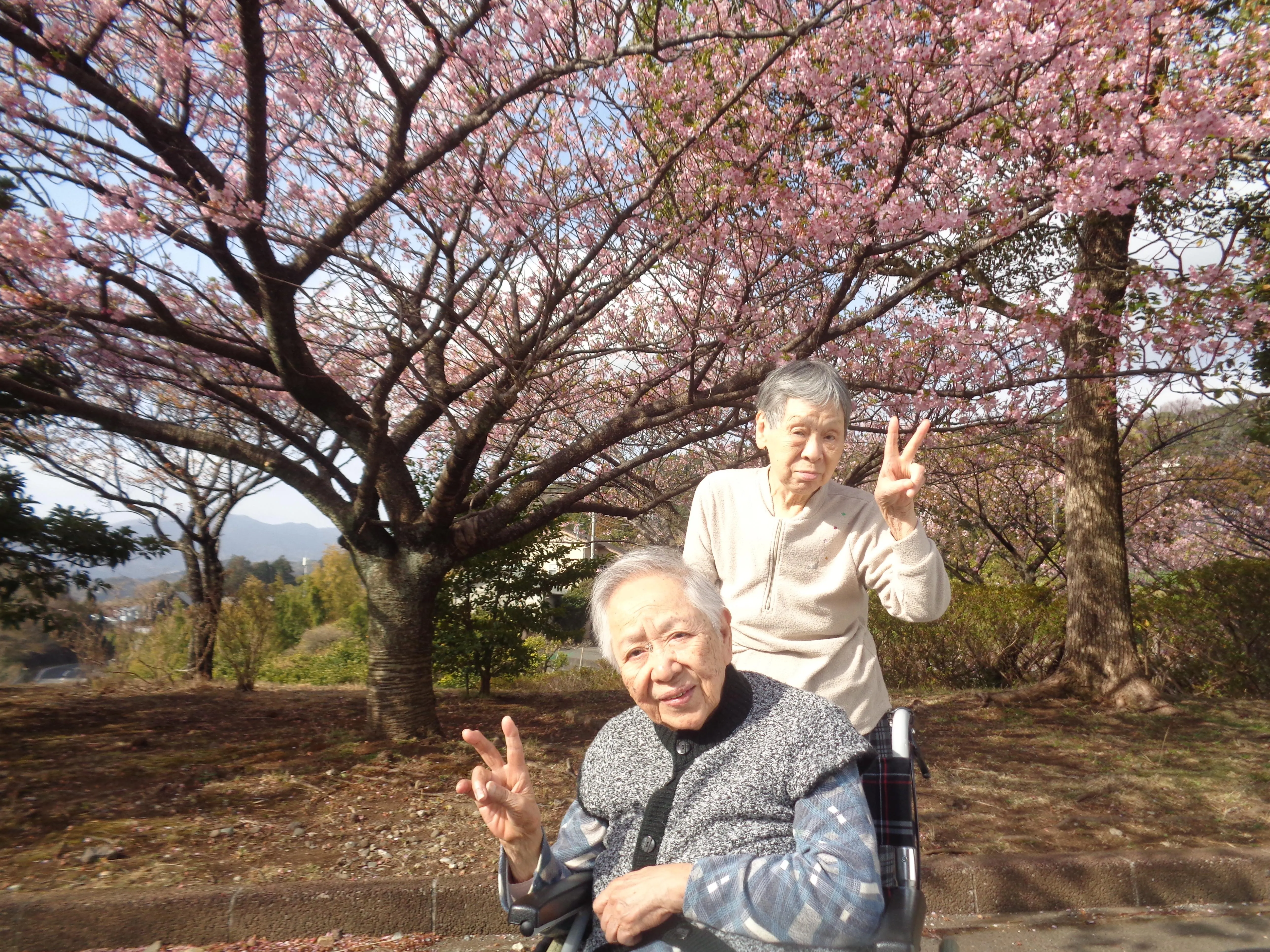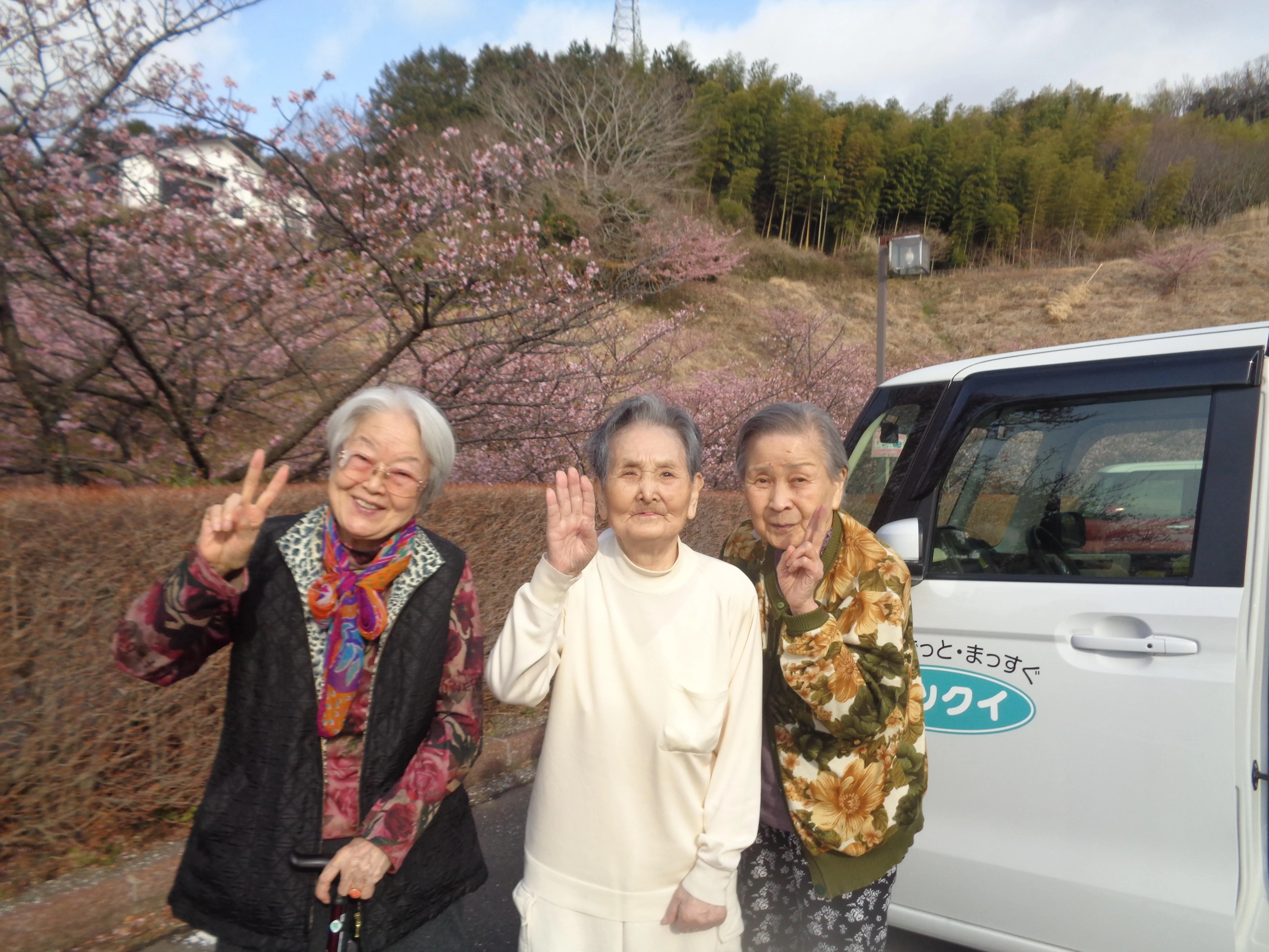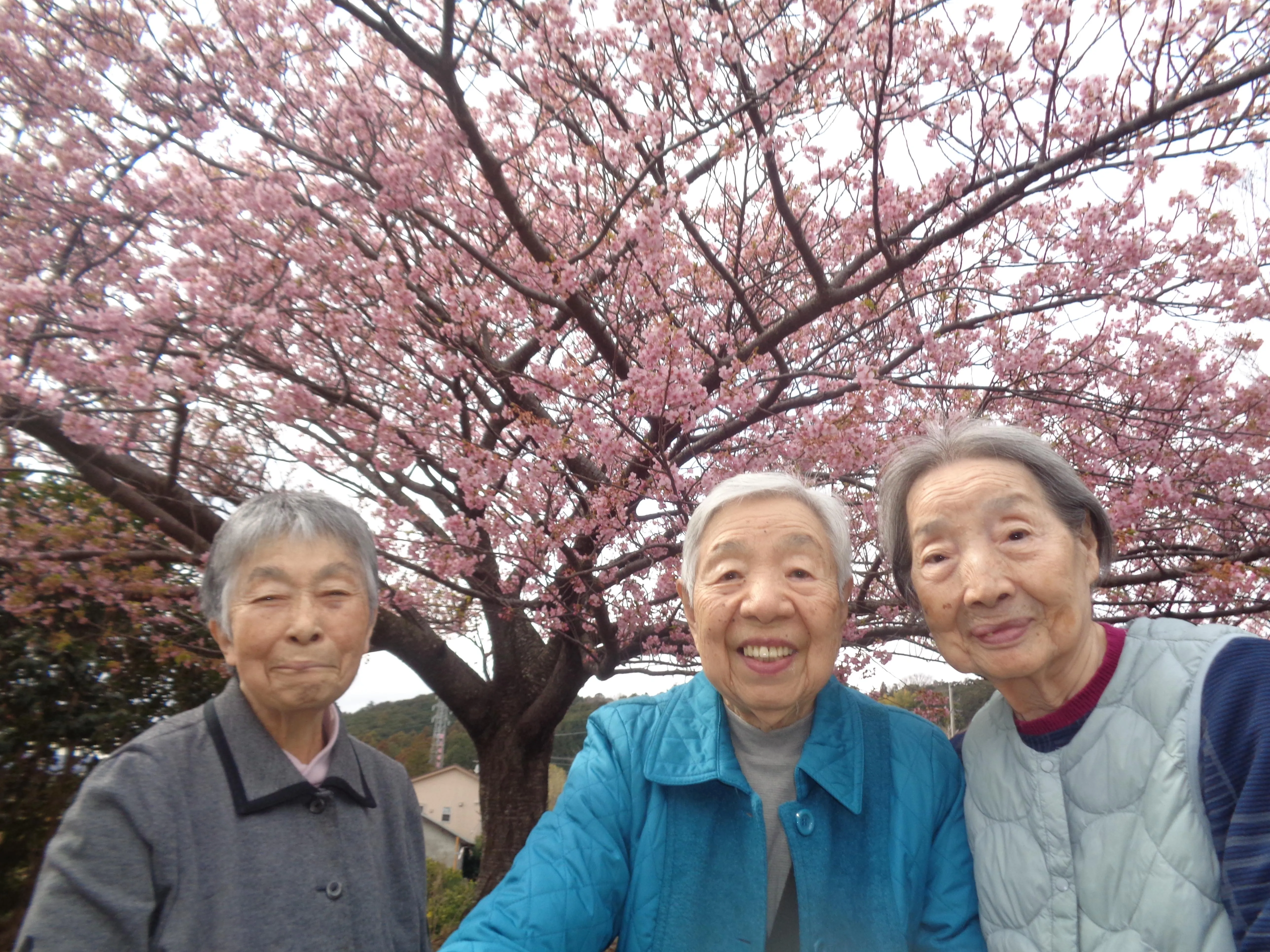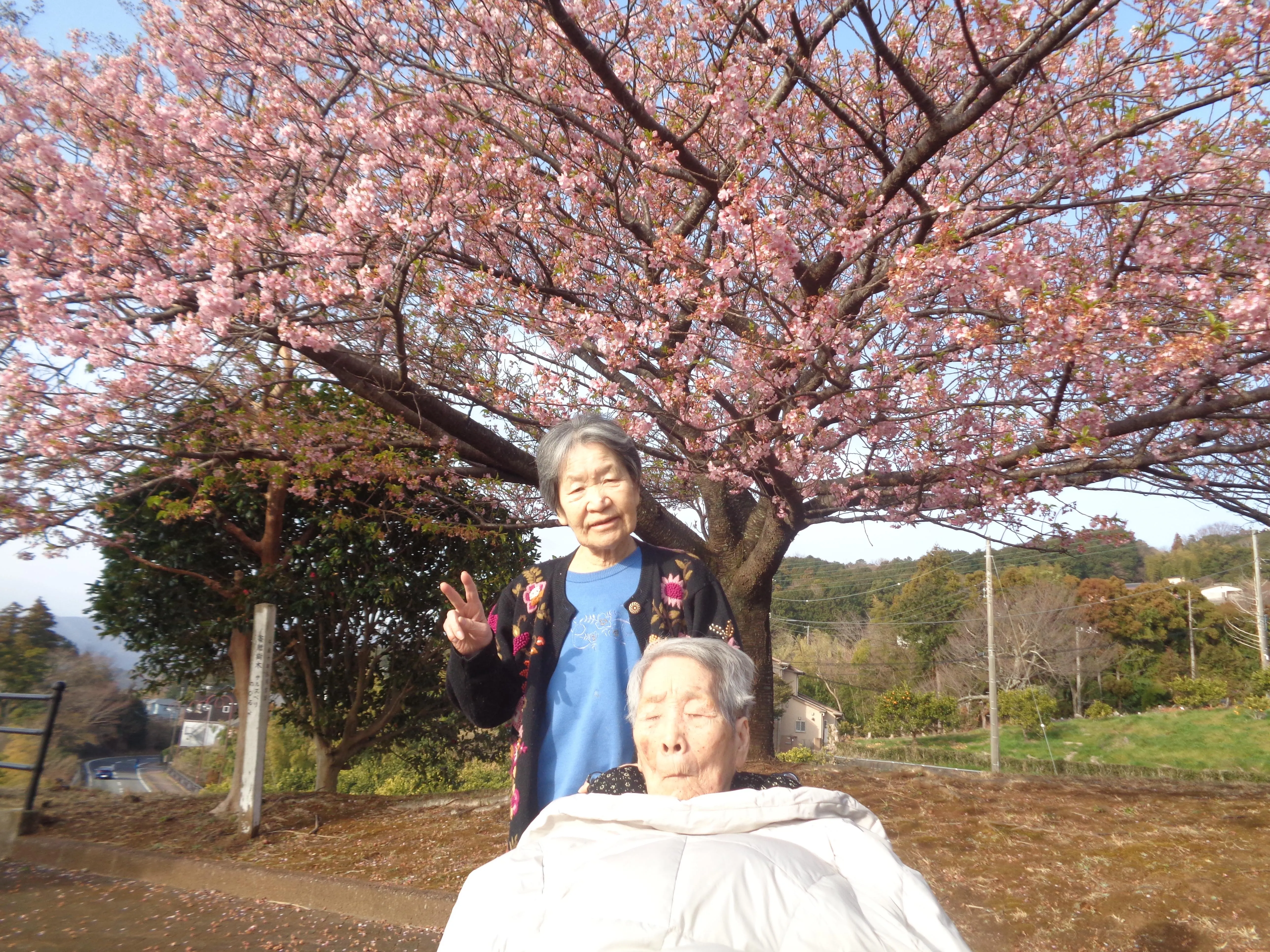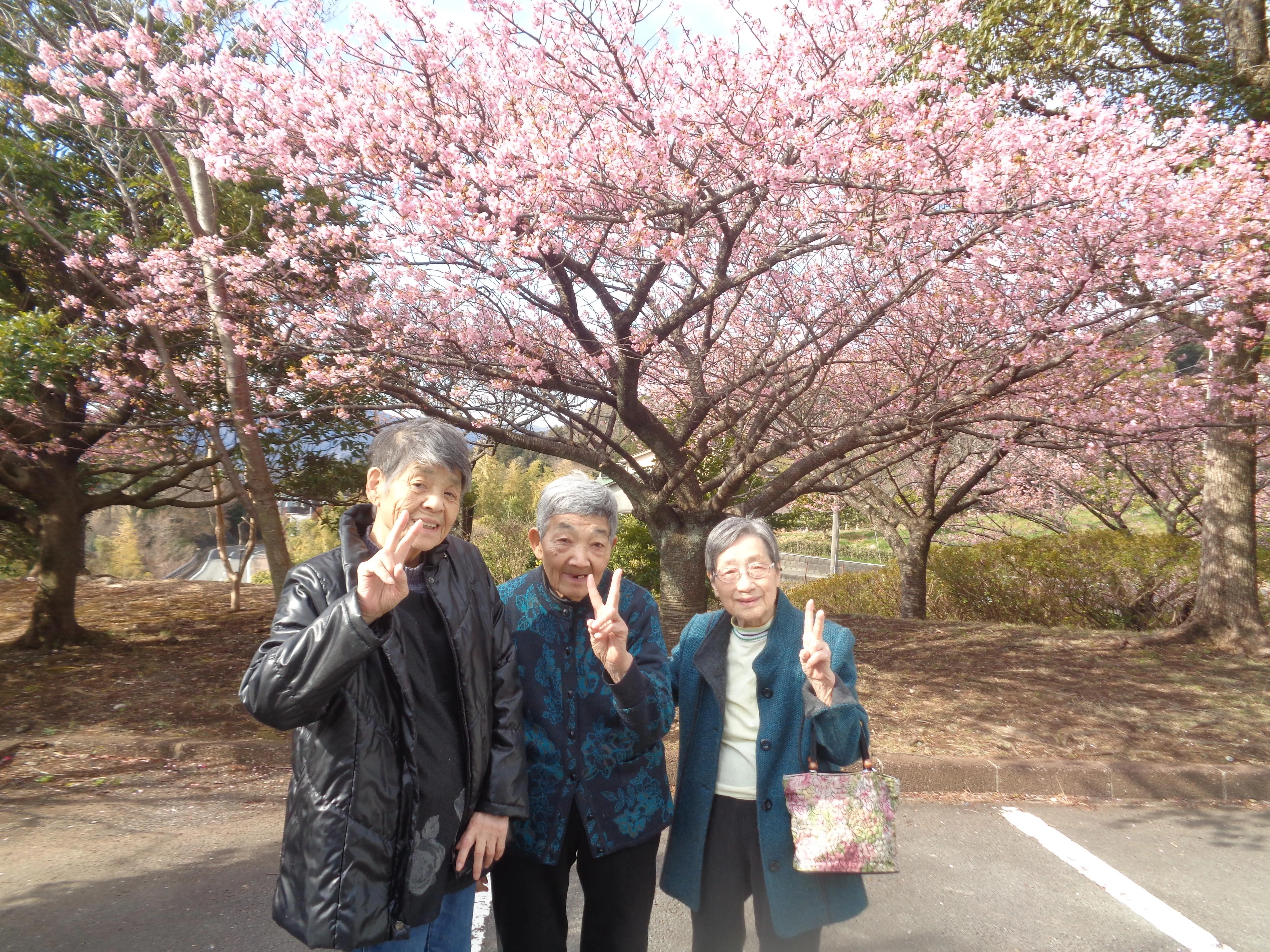 ツクイ湯河原グループホームの近くにも桜が咲いてきました。今月は早咲きの桜を見にドライブに行きました。「急に暖かくなってきたから今年は早いねー。キレイだねー」など、楽しい桜見学となりました。