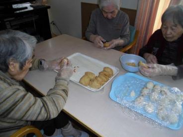 2階あやめユニットでは、お客様による昼食づくり、おやつ作りを楽しみました。メニューは稲荷ずしと、どら焼き。どちらも、あっという間に完食されました!