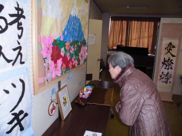 また、地元である湯河原町福浦地区で行われた作品展の見学に行きました。お客様手作りの富士山の壁紙や、刺繍、編み物、折り紙細工など、地域の方の作品に交えて、立派に飾られてました。2月中旬には湯河原町作品展にも出展される予定です。