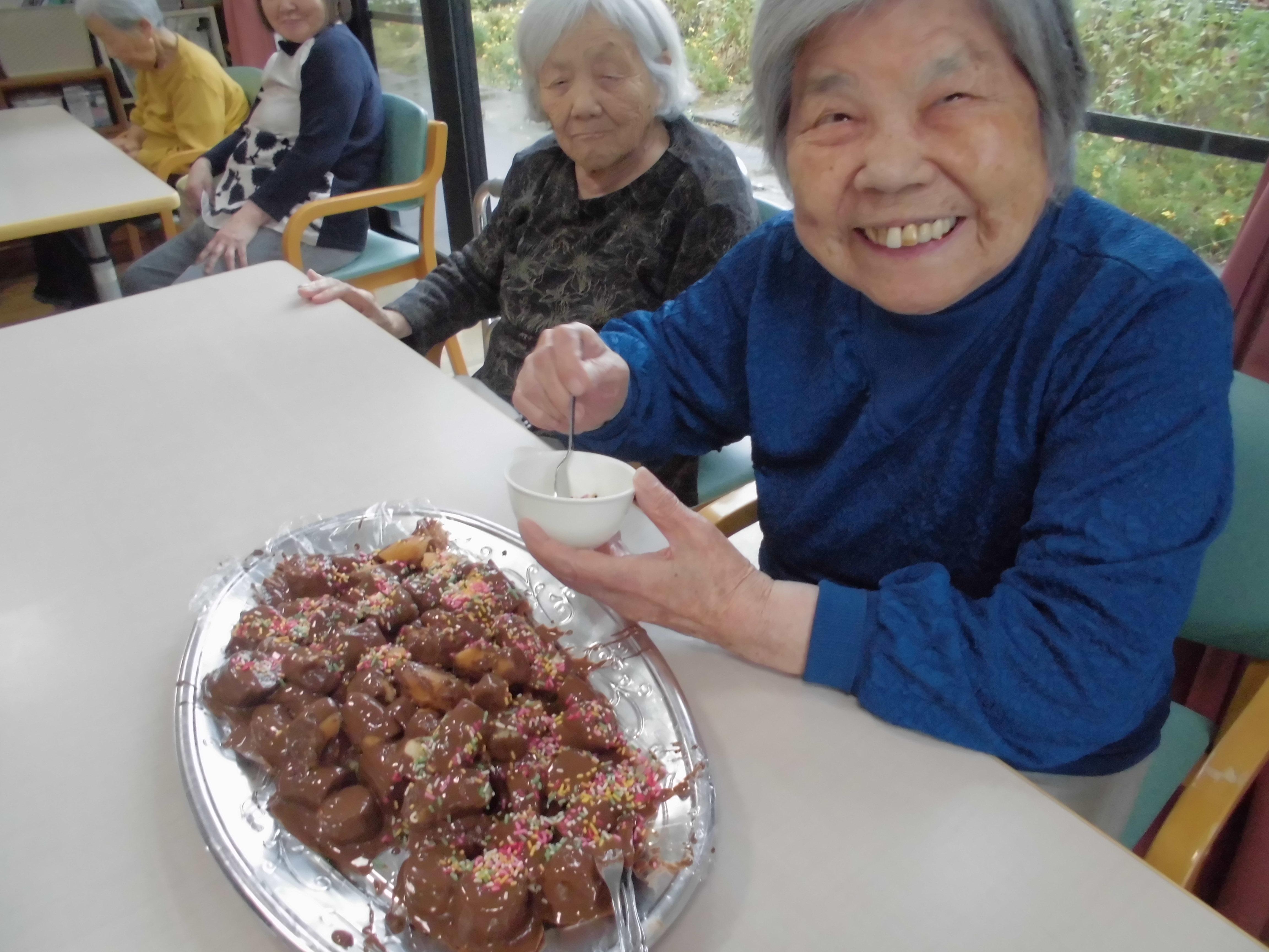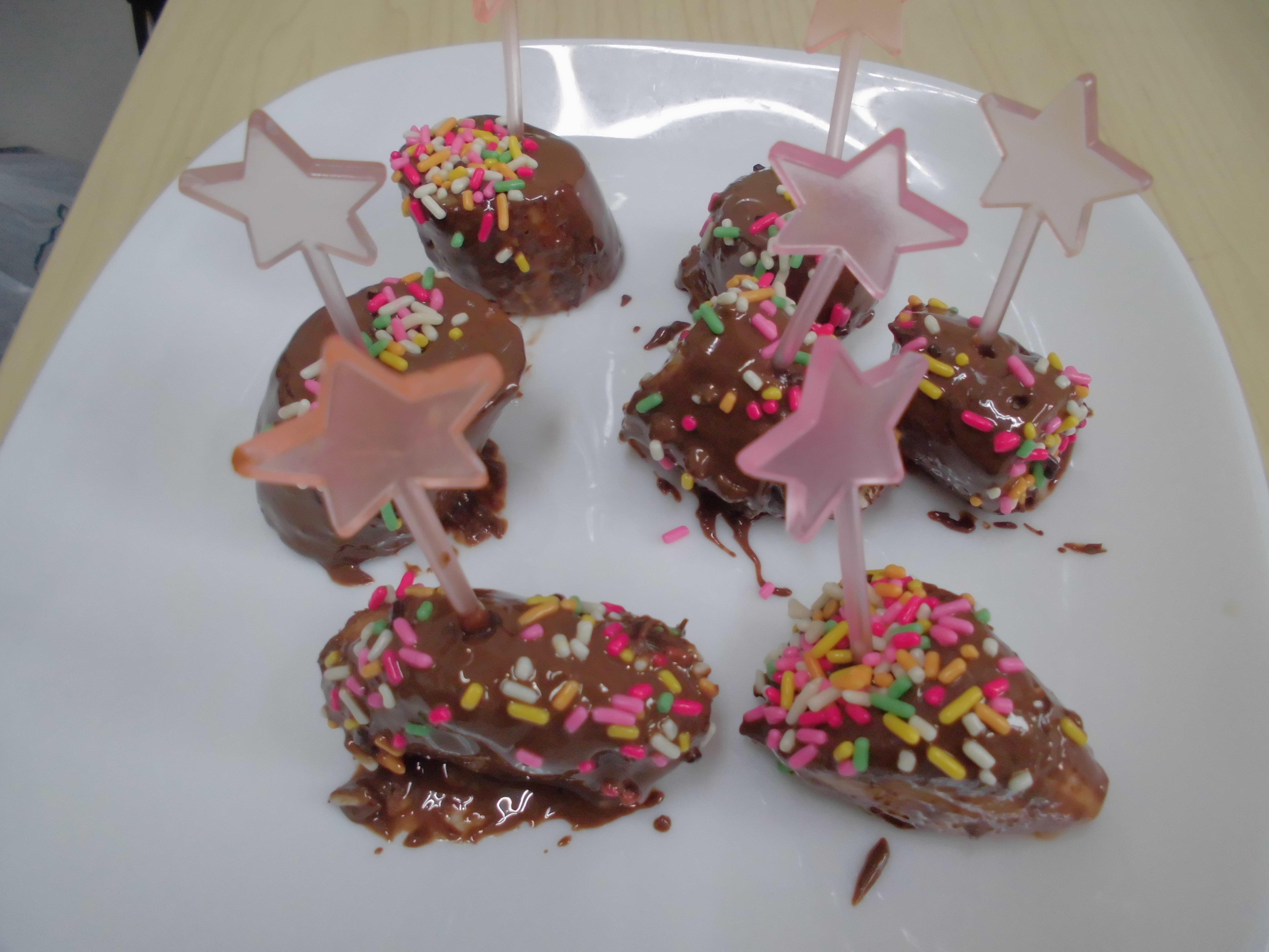 出来上がったチョコバナナは、カラフルで可愛く出来上がりました。あっという間に完食です。