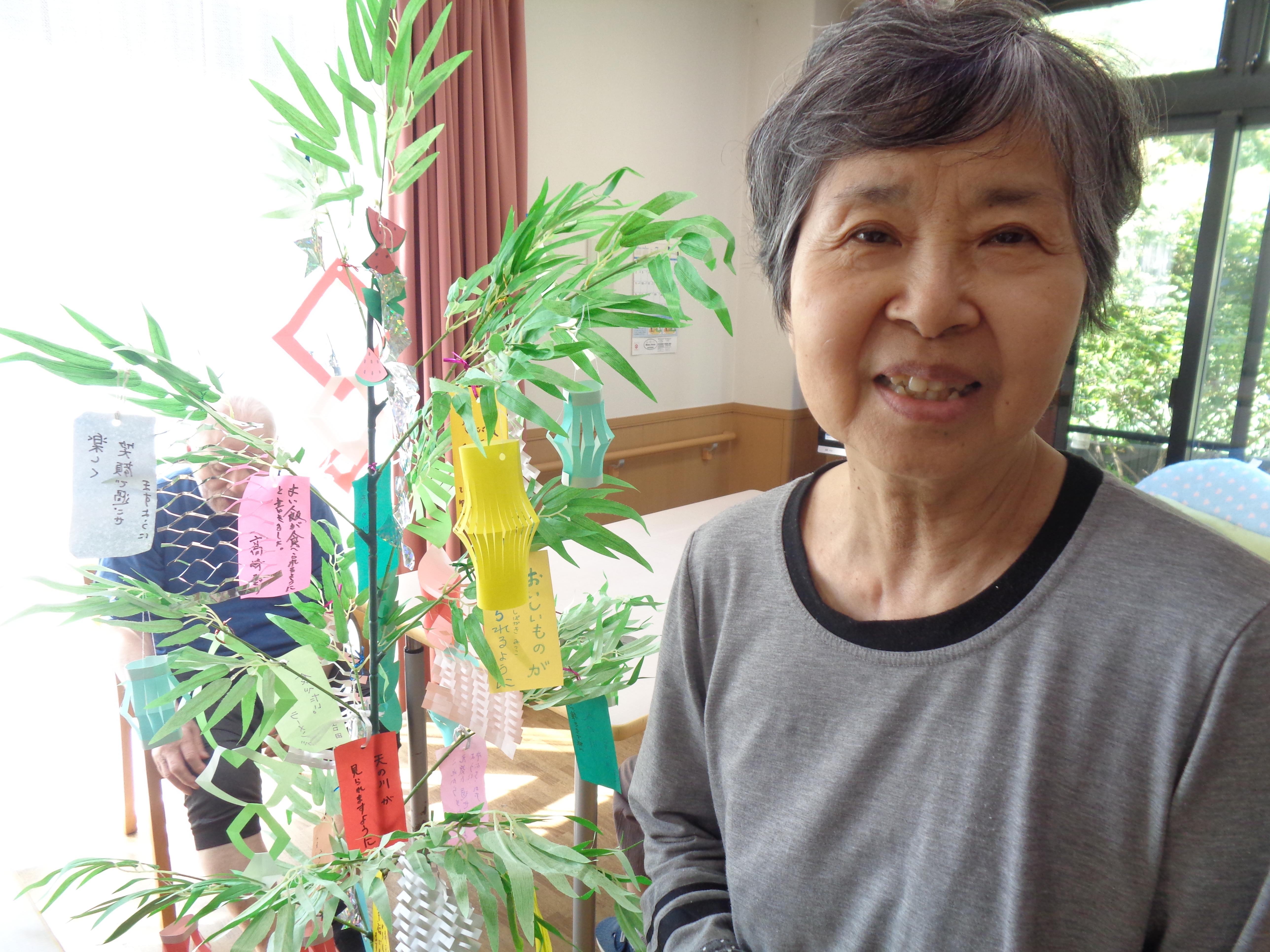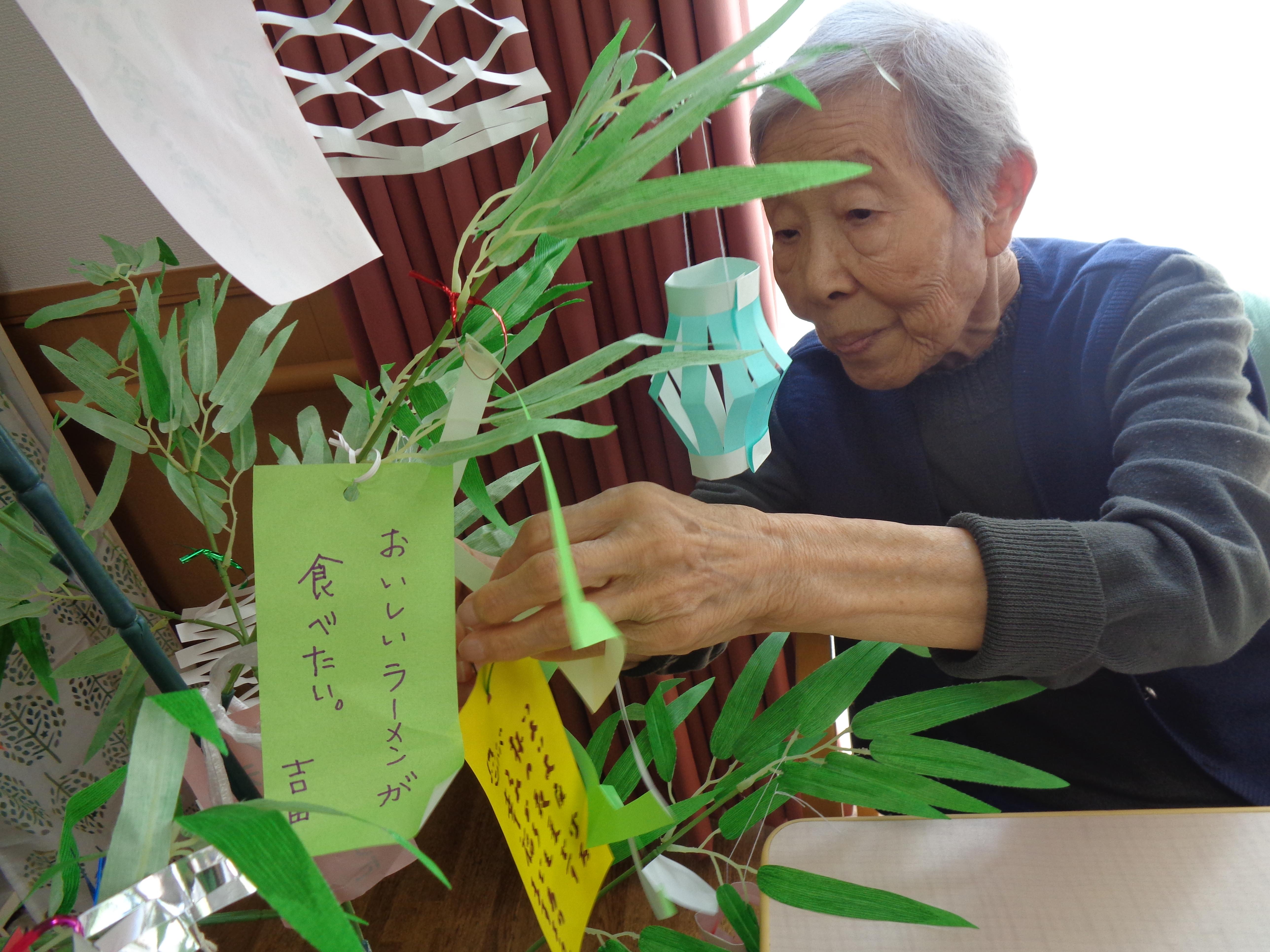 7月の七夕にお客様が短冊に願いを込めて飾りつけをしました。お願い事が叶いますように。※只今、一緒に働いてくださる職員さんを募集しています。お気軽にお問い合わせください。 採用担当 亀井☎0463-97-2722