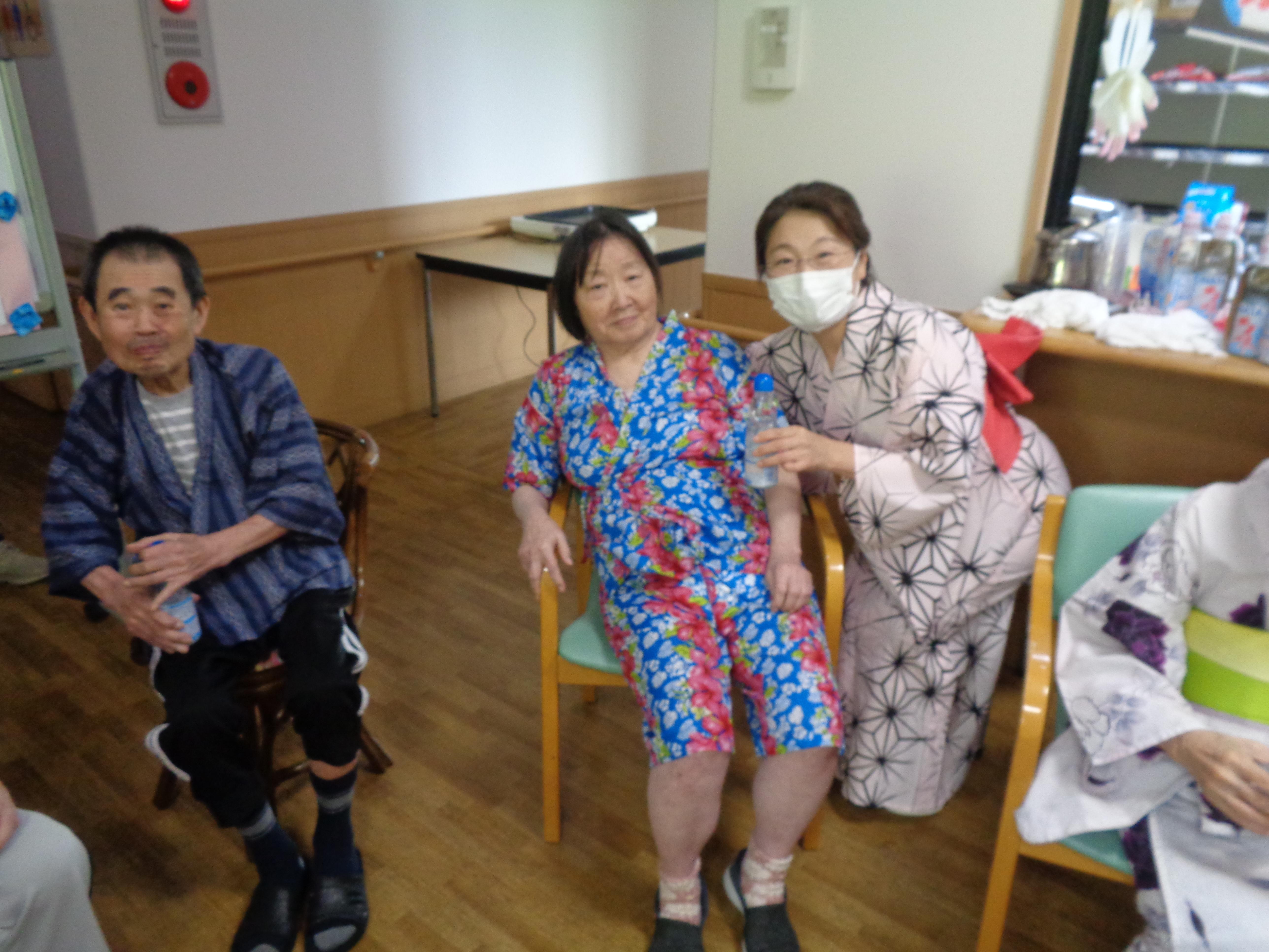 ささやかですが、今年も夏祭りを開催することができました。ラムネやかき氷を頬張りながら、的あてゲームや輪投げなどを楽しみました。お昼ご飯は屋台風メニューで、夏祭り気分を満喫しました。まだまだ暑い日が続きますが、ご自愛くださいませ。