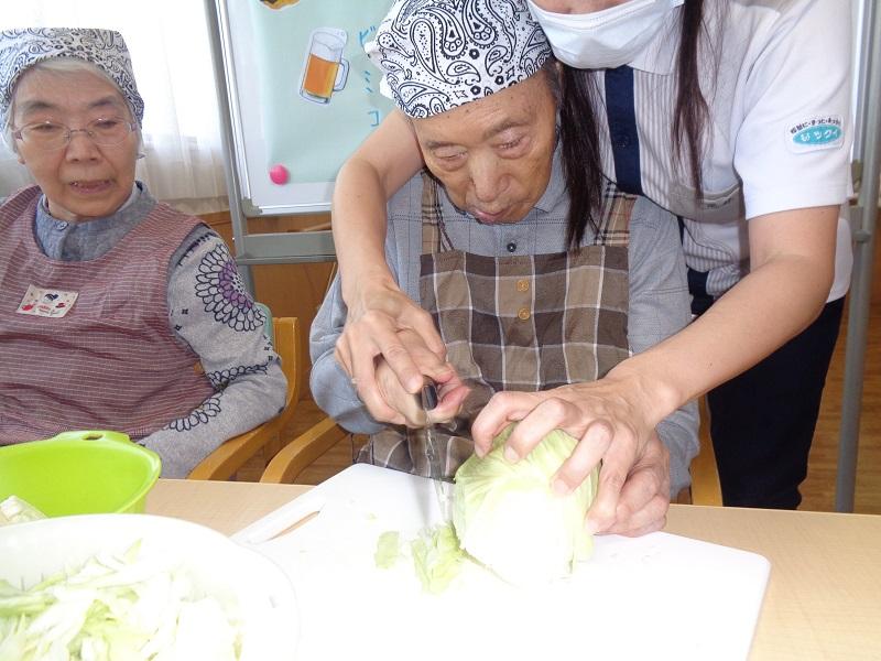 お客様にキャベツを切っていただいたり、一緒に焼きました。