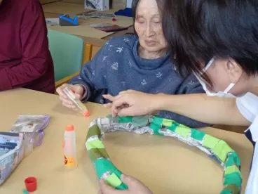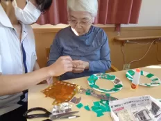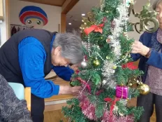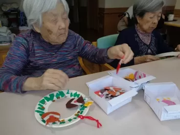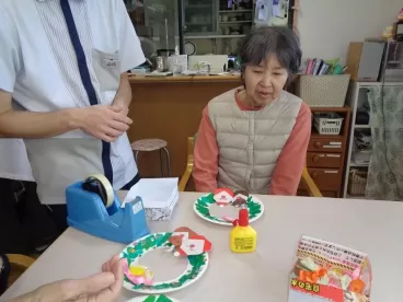 また、クリスマスツリーの飾りつけや手作りのリースを作りました。