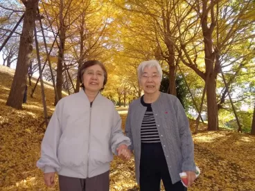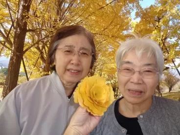 綺麗な銀杏並木を散策に行ってきました。銀杏の葉でバラを作り、楽しく散策もできました。