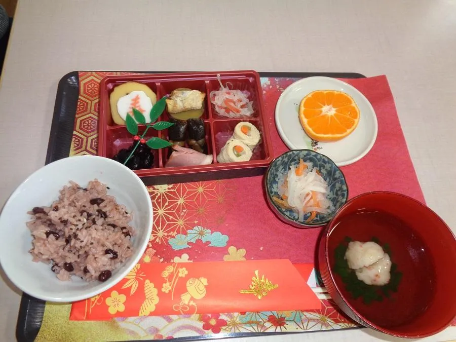 元日のランチはお赤飯におせち 特にお赤飯は好評でした。