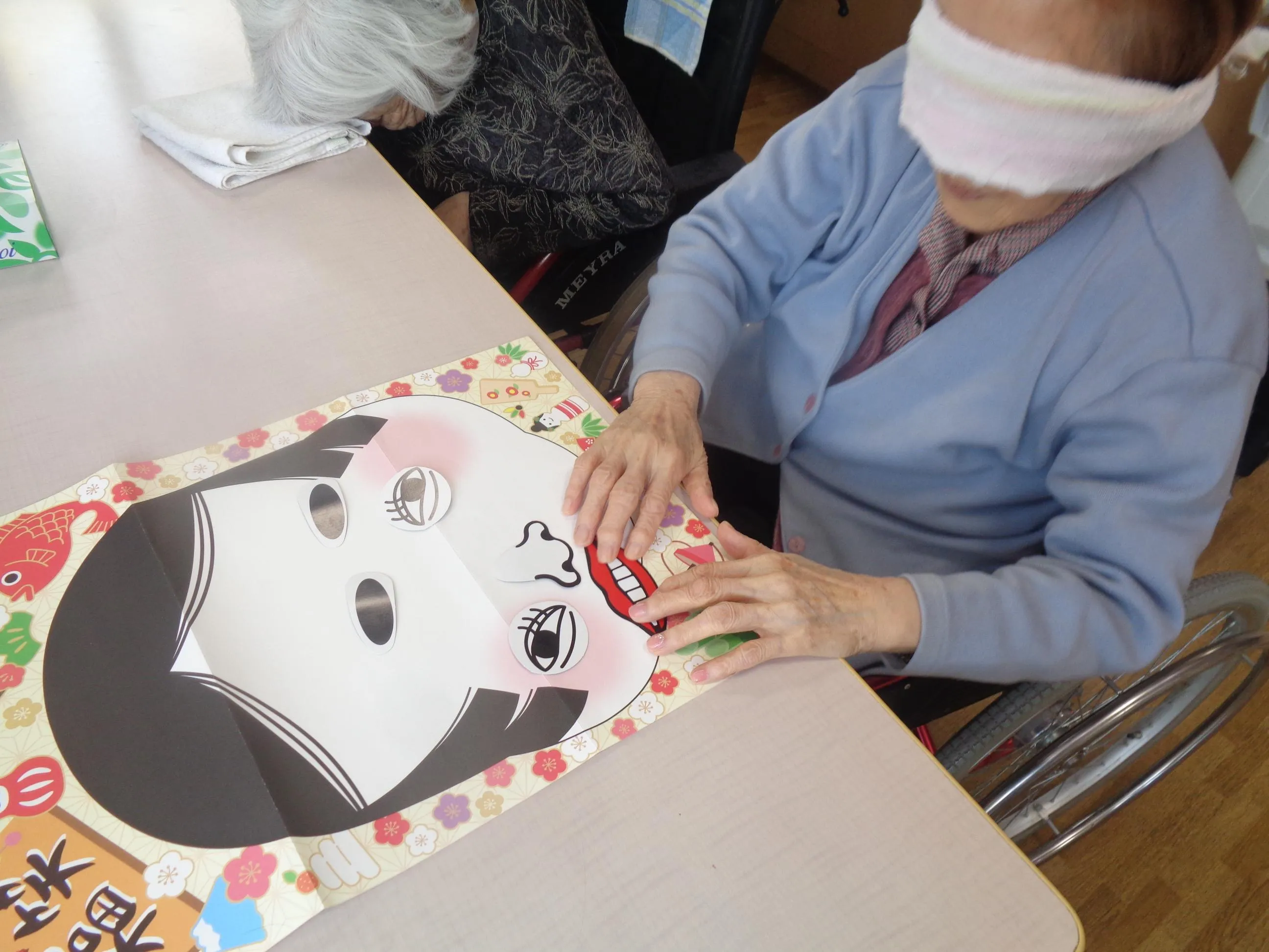 ツクイ伊勢原高森グループホームでは、お正月には獅子舞がやってきたり、初詣に出かけたり、福笑いをして手遊びをしたりと、お正月らしいお正月を迎えることが出来ました。