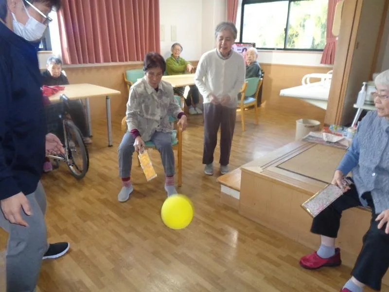 また、お正月遊びの福笑いや風船を使った羽子板で楽しみました。