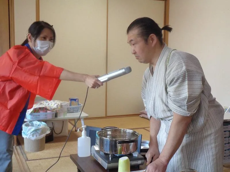皆様の前でちゃんこ鍋を作りながら、質問に答えてくださいました。