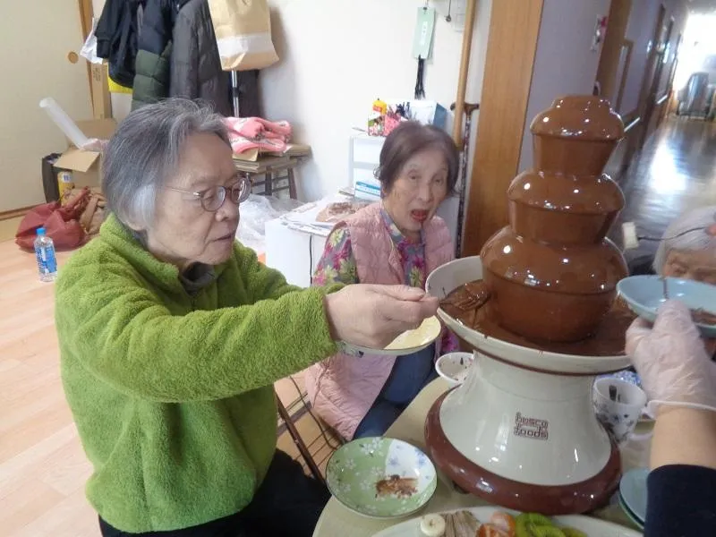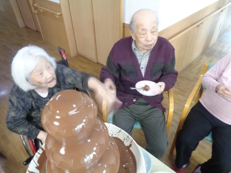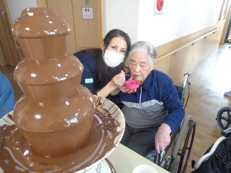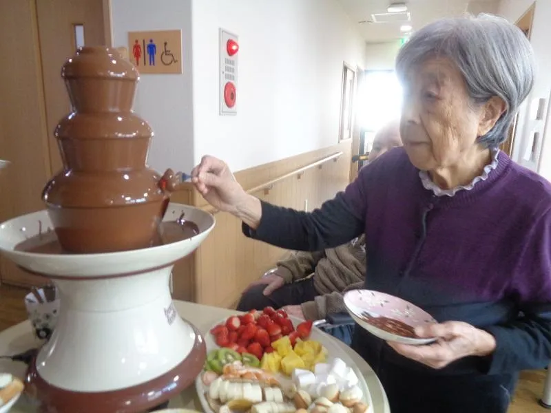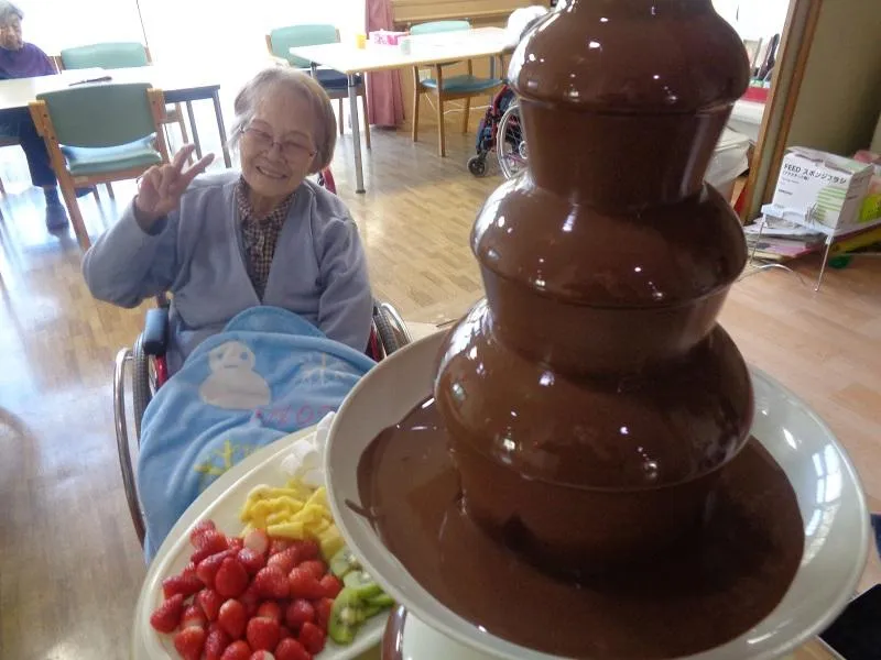 バレンタインデーイベントでは、スタッフ一同から愛をこめて、チョコレートファウンテンを行いました。
