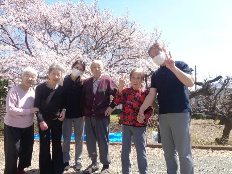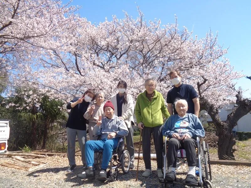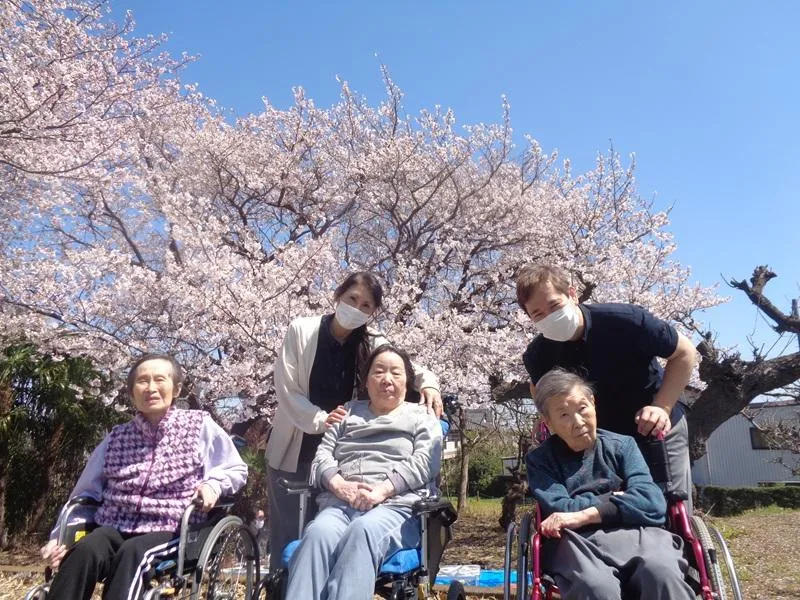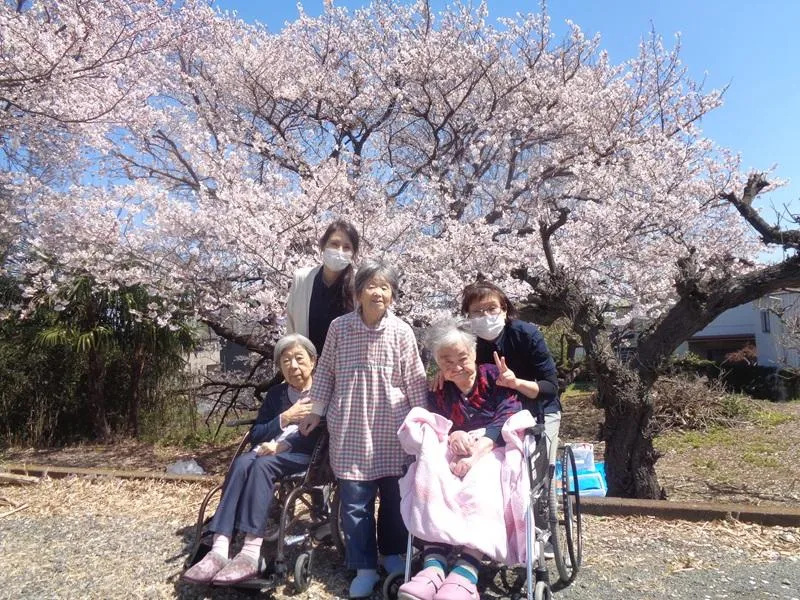 桜が満開になってきましたね。お客様と近くの桜の木の下で、お花見をしてきました。とても大きな桜の木で、皆様びっくりしながらもきれいな桜を笑顔で見て楽しみました。