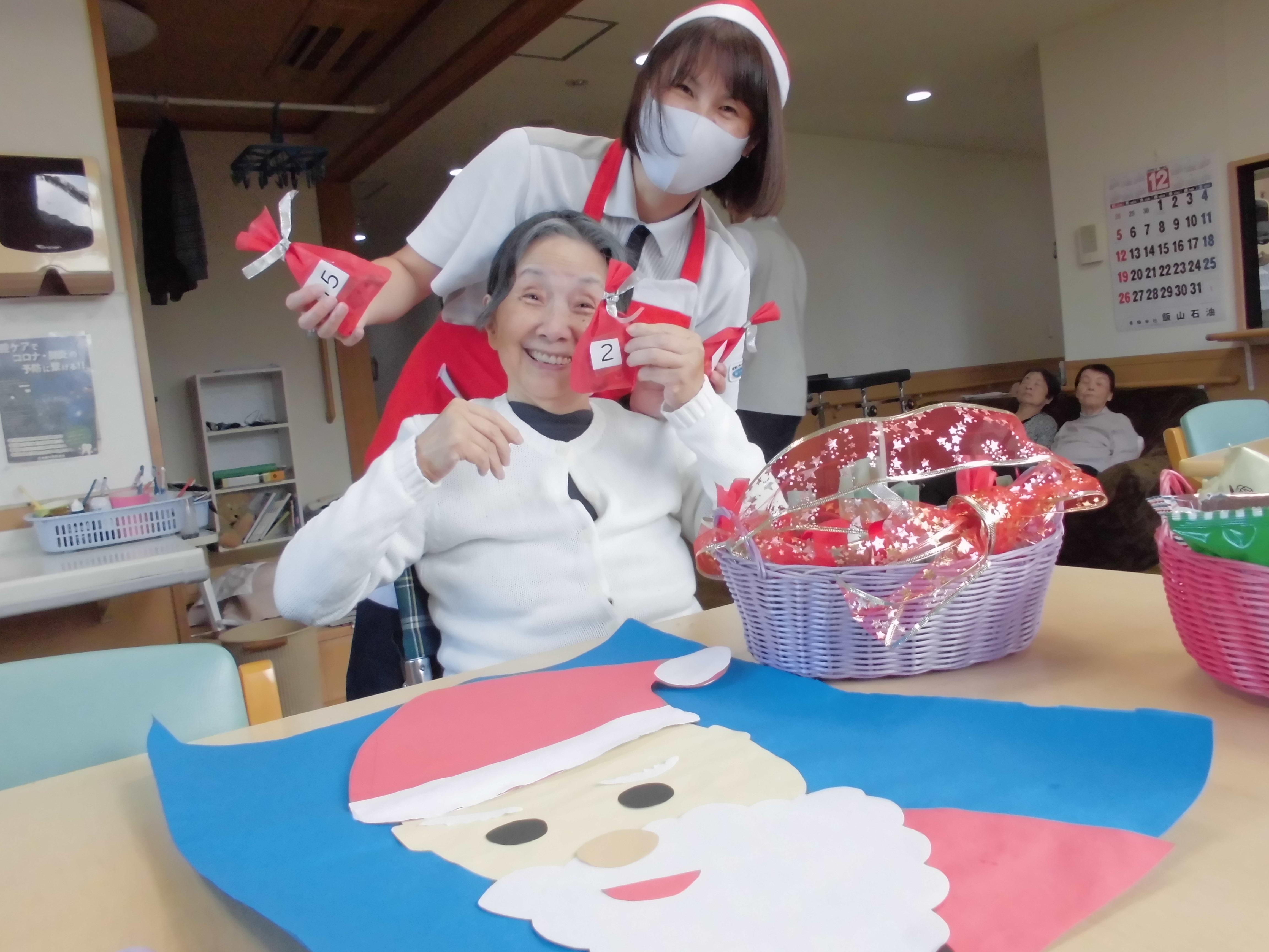 クリスマスプレゼントは男性はニット帽、女性はひざ掛けにしました。寒い日が続きますが、ご自愛くださいませ。