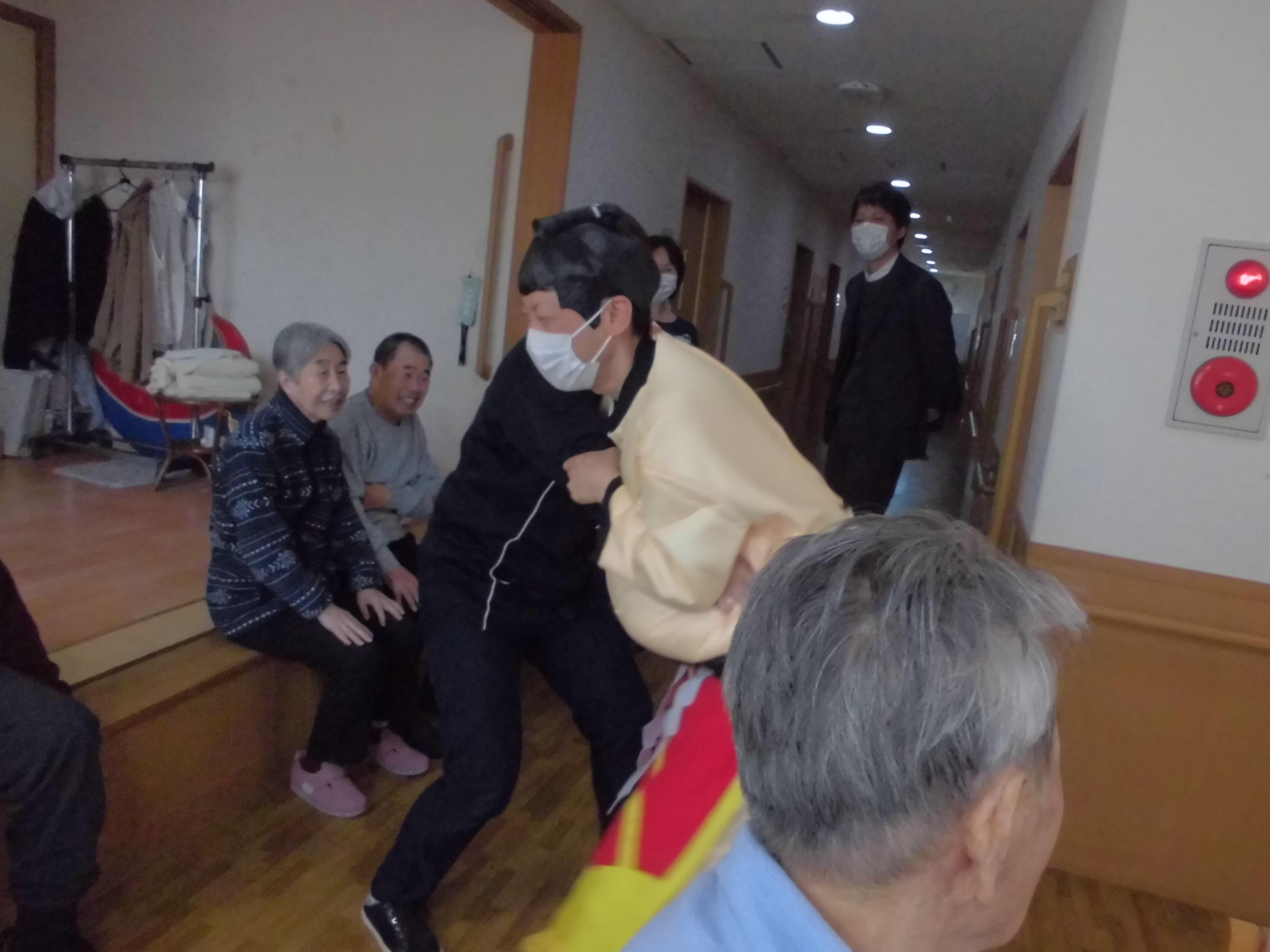 今日は、新年のご挨拶に横綱が来てくれました。ツクイ伊勢原高森グループホームで一番勝負。見事、所長の勝利で金一封を頂きました。みんなで美味しい物を食べましょう。