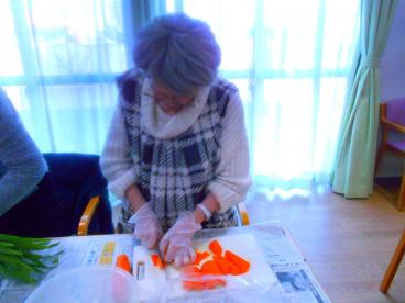 お客様には、ラーメンに使用する野菜を切って頂きました。