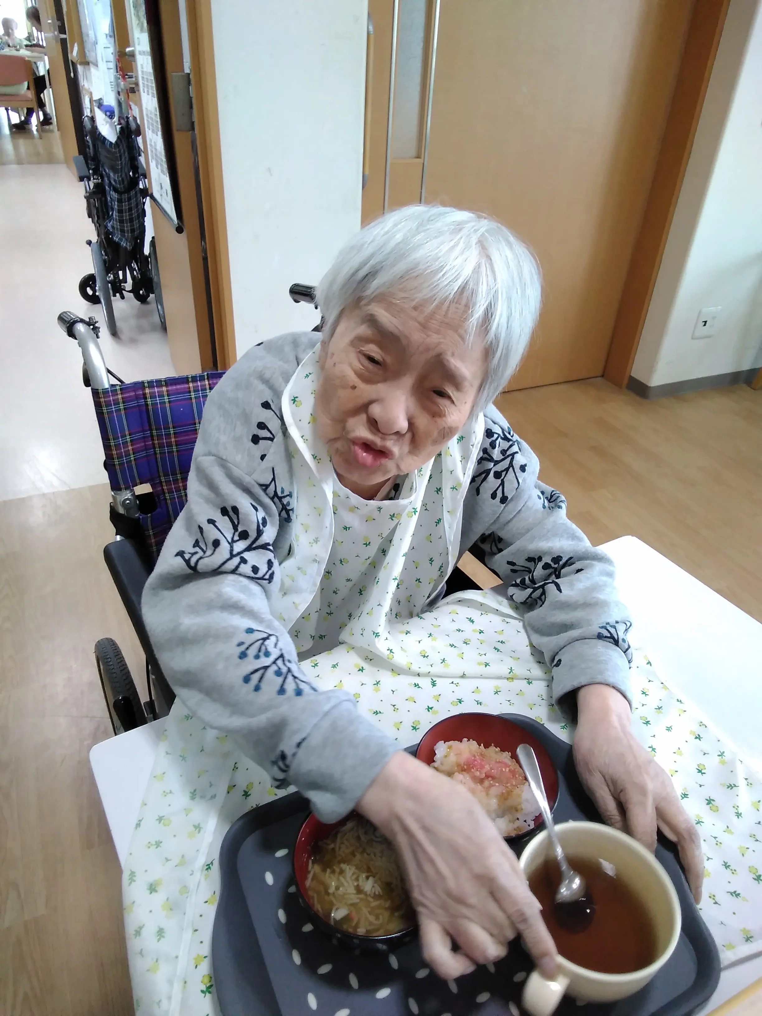 食のイベントとして、オードブルと特製稲荷ずしに加え、セリ鍋をご提供いたしました。施設ではお餅の提供は誤嚥防止の観点からできていませんでしたが、今回お汁粉が登場し、やわらかいお餅風のムースにてご提供いたしました。久しぶりのお餅似た触感や見た目に、「うれしいね」と喜ばれていました。