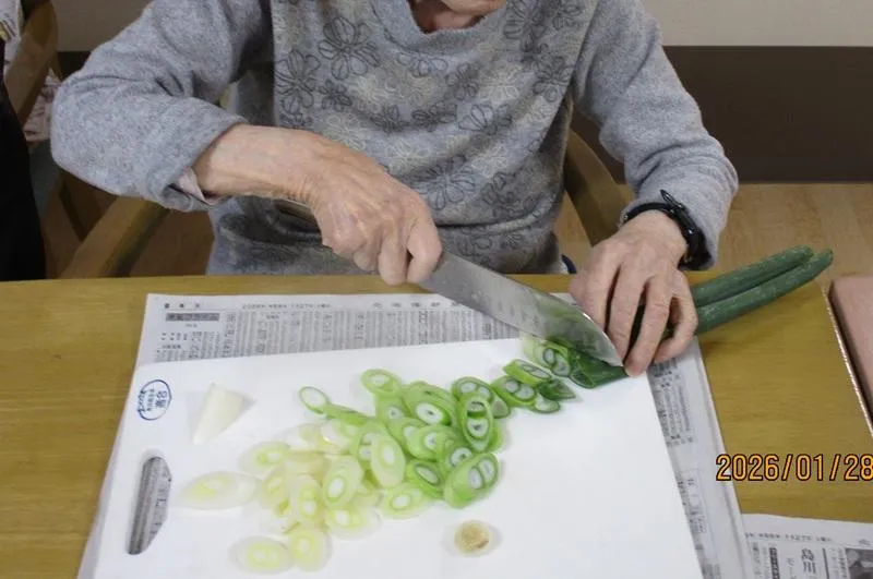包丁を持つ手つきは「さすが主婦!」と声が上がるほど手際がよく、「その切り方いいね」「昔よく作ったよ」など会話も弾み、笑顔があふれるにぎやかな時間となりました。