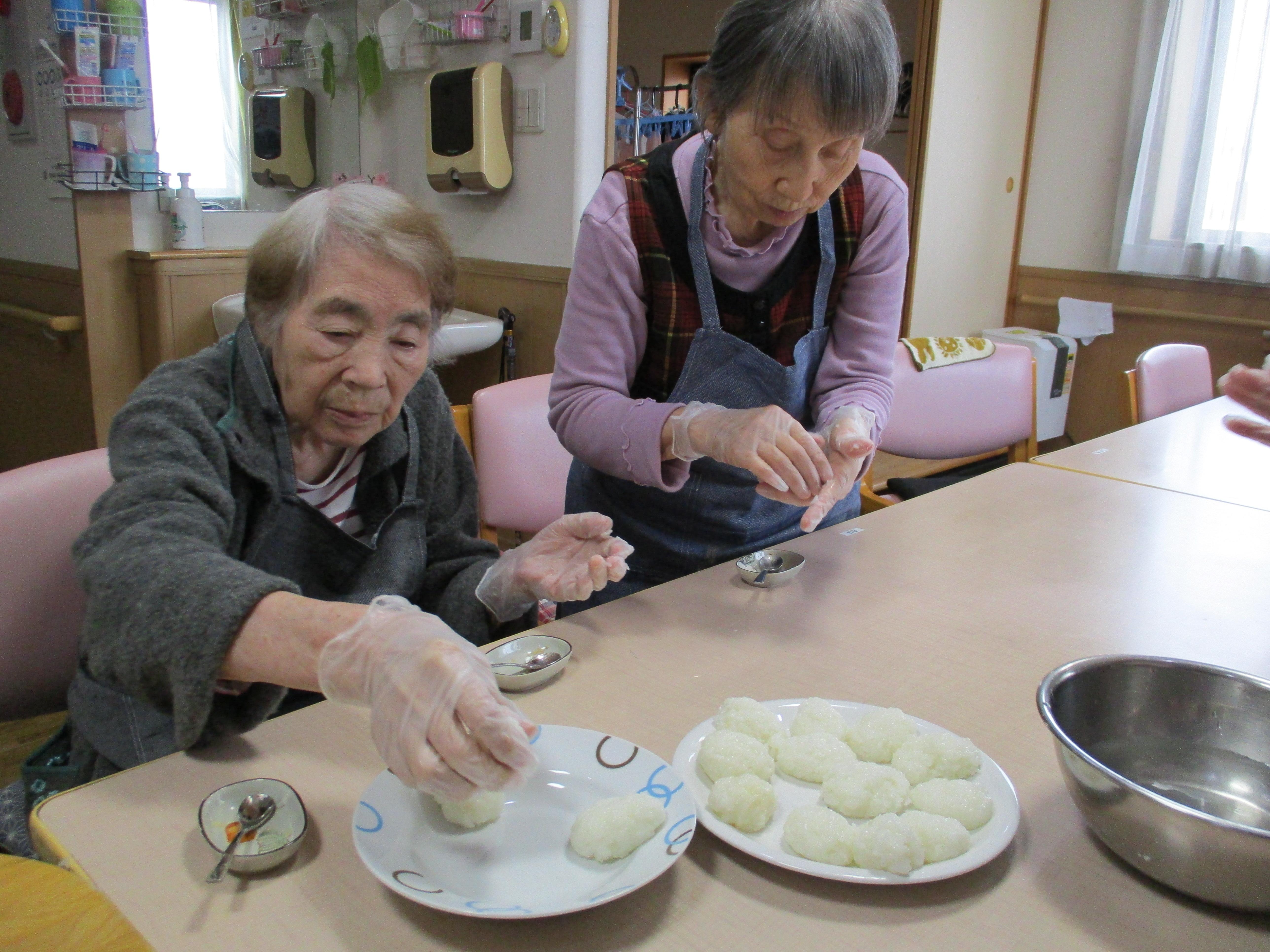 3月3日に、1階と2階の女性のお客様で桜餅を作りました。