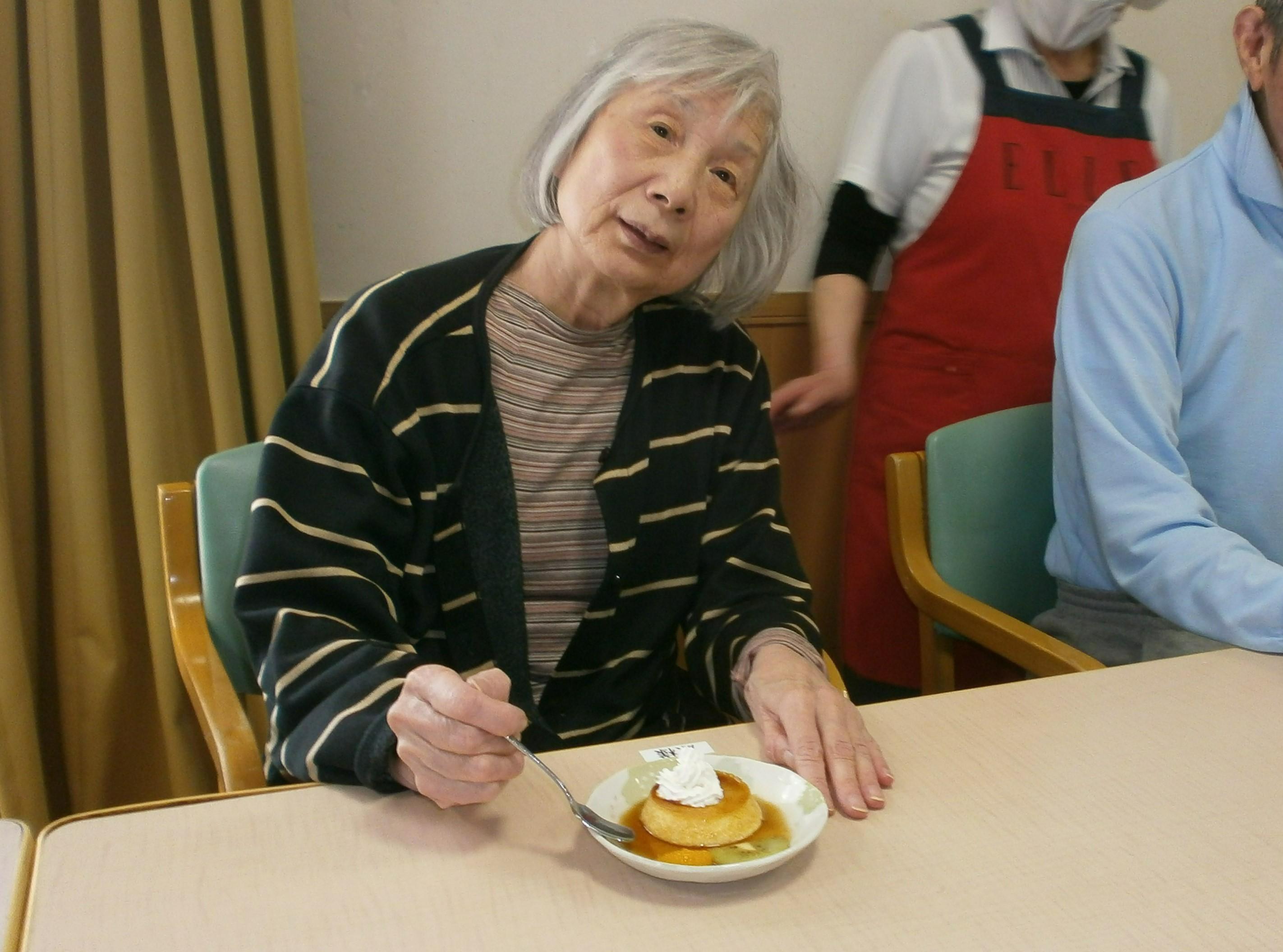 おやつレクリエーションでは、プリンアラモードを作りました。