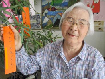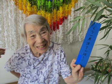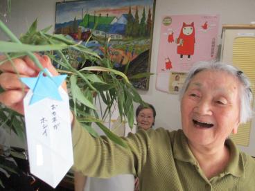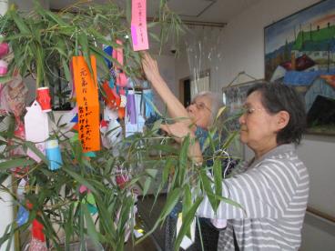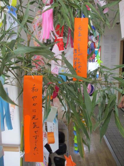 皆様と七夕飾りを作りました、思い思いの願い事を吊り下げました