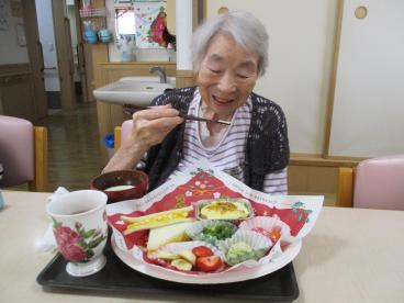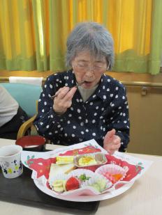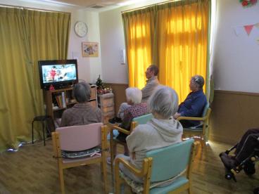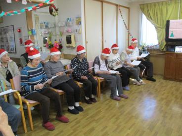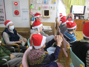 クリスマス会では、皆さんで体操をしたり歌を歌ったり、演奏を聴いたりプレゼント交換をしたりと、楽しい時間を過ごしました。サンドイッチとグラタンのランチも、とても喜んでおられました。