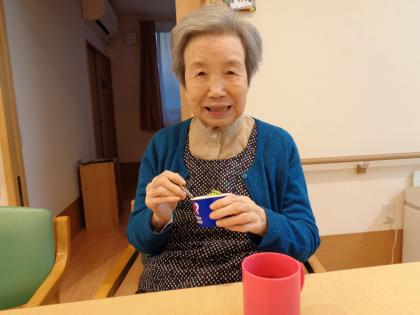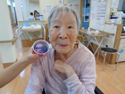 サーティーワンアイスクリームを食べました。色とりどりのアイスクリームをその時の気分で選んでいただきました。普段は中々食べる機会がないので、皆さん楽しそうに喜んでくださいました。食形態がトロミやペーストなどの制限がある方でも召し上がることが出来てよかったです。
