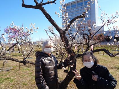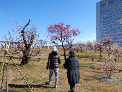 残念ながら当時の梅の木は古木となり数は少ないのですが、新たに若木がたくさん植えられています。種類も豊富で様々な色や形の梅が咲き乱れていました。