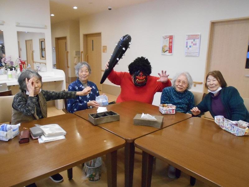 ツクイ仙台愛子グループホームでは、毎年本気の鬼が登場する節分の豆まきが行われます。