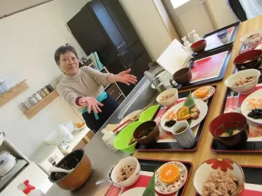 元旦には、お料理の得意なお客様が、おせち料理を盛り付けしてくださいました。