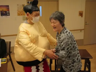 ツクイ仙台愛子グループホームにお相撲さんが来所され、お客様一人ひとりにプレゼントを下さいました。