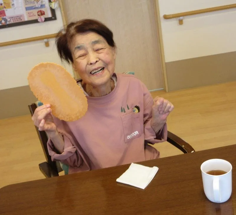 後日お土産にとお客様が選ばれた顔よりも大きいおせんべいを、皆様と一緒に召し上がりました。