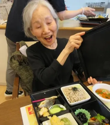 わくわくしながらお膳の蓋を開けて驚く様子がみられ、「とても美味しかった」とたくさん喜びのお言葉をいただき、盛大にお祝いしました。