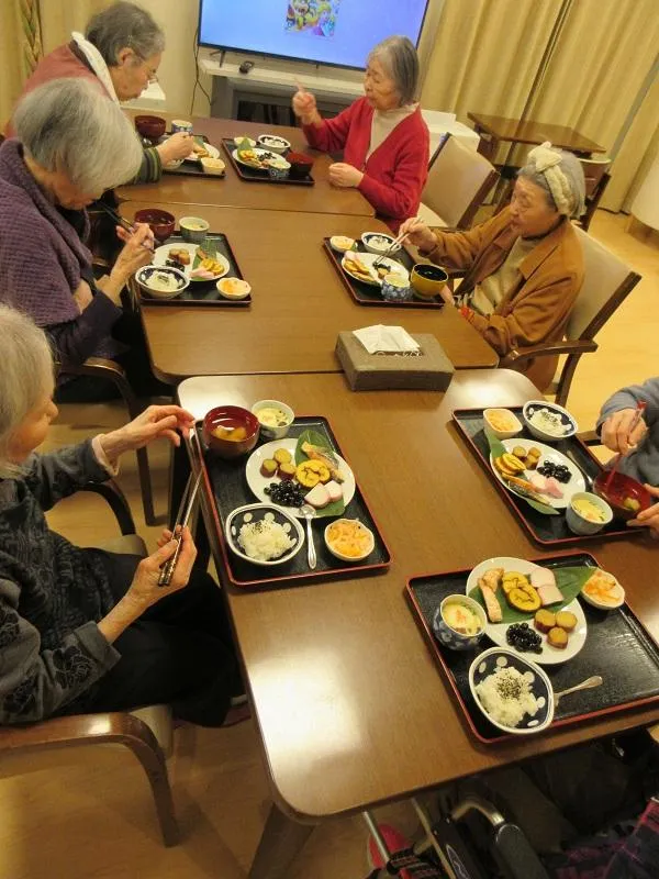 初詣を終えてからは皆様と一緒におせちづくりも行い、茶碗蒸しは手作りとなっております。