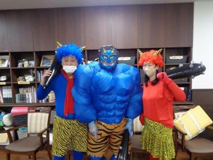 そして、今年の豆まきは盛大にデイサービスと合同で行いました。