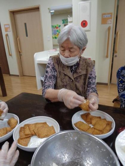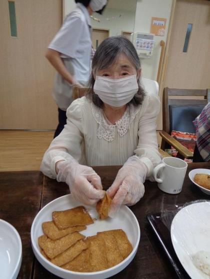 19日には、お客様と一緒に、稲荷寿司作りをしました。