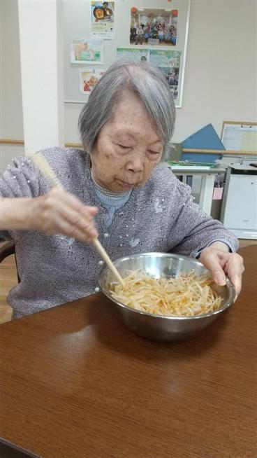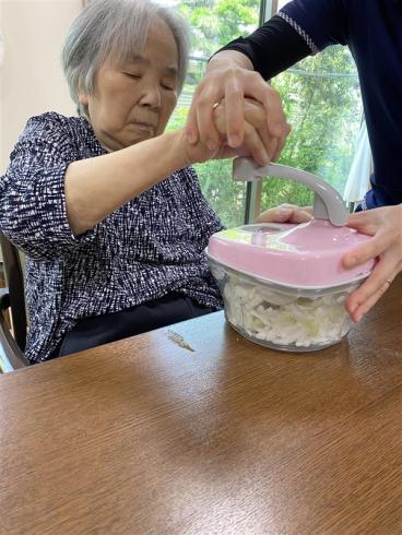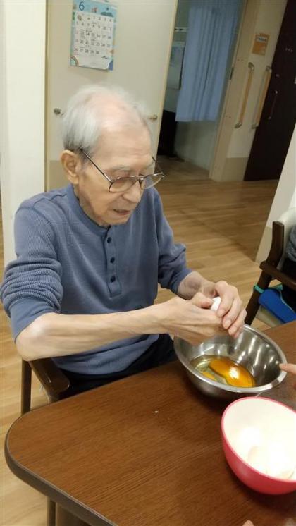 6月19日の父の日に、調理レクリエーションとして、皆様に浜松風餃子とフワフワたまごスープ、もやしの和え物をスタッフと一緒に手作りして頂きました!