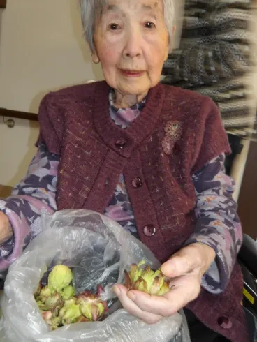 ほんとに春じゃのう。にがみのある匂い、これが採れたのふきのとう、豊かな香りだな。