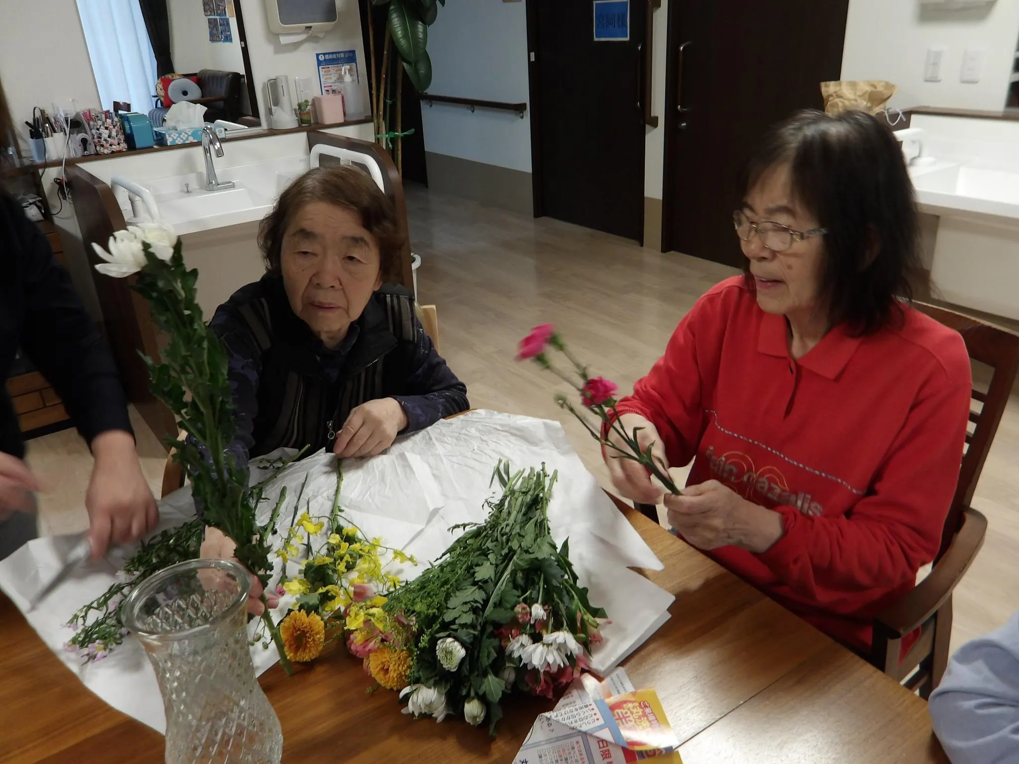 ご婦人A:茎は斜めにカットしてと。