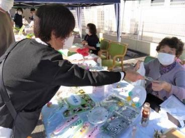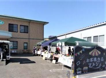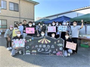 ツクイ甲府国母の駐車場で、ツクイ甲府国母・ツクイ甲府下飯田・ツクイ甲府中央・ツクイ甲府大手のデイサービス4事業所にツクイ甲府富士見グループホームとそよ風様をご利用されているお客様の作成した作品を販売するマルシェを開催しました。