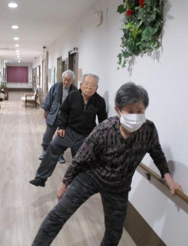 先日、腕や足を鍛えるための機能訓練を実施致しました。スタッフの声かけに合わせて、お客様自ら足を上げて伸ばし、より元気に活動していくための体づくりに積極的に取り組まれていました。
