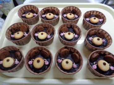 オレオを砕く、型にしぼり出すなどの作業をお客様に行って頂き、仕上げのデコレーションはスタッフが行いました!クマさんの可愛いケーキができましたよ。