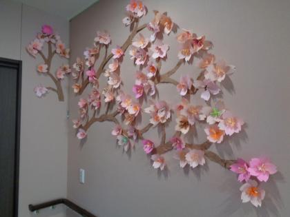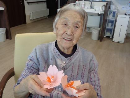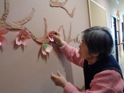 ツクイ盛岡本宮グループホームでは一足早く桜の飾りを作りました!