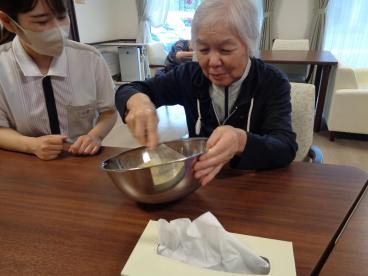 ケーキづくりは、お客様にも手伝って頂きましたよ!