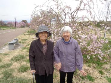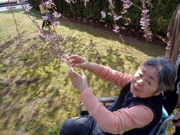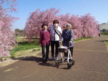 現地では満開の桜を見て「綺麗だね。」と桜に手を伸ばして見たり、桜を見ながらいつもより少し長く歩くことができました。多くのお客様が自然と笑顔になられており、良かったです。