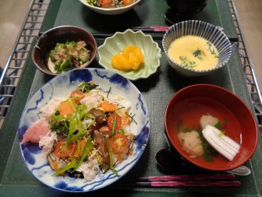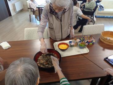 そんな敬老の日のお昼ご飯はちらし寿司でした。お客様に盛り付けをお願いし、豪華な昼食が完成しました!
