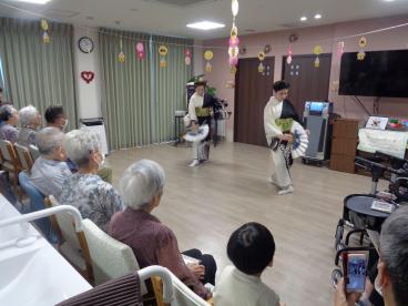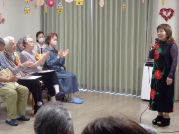 又、今回舞踊と民謡の先生方をお呼びし、披露していただきました。踊りや歌声に注目することはもちろんですが、曲目ごとに衣装が変わりお客様も「衣装すごいね~」と感激されていました。知っている歌では一緒に口ずさみ、踊りも真似てみたりなど、1時間たっぷり楽しまれていました。